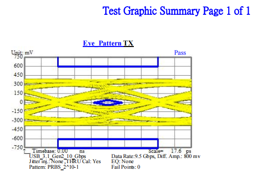 下面圖九是不貼復合鋁箔傳輸數(shù)率圖,為7.0Gbps;圖十是貼上復合鋁箔線纜的傳輸數(shù)率圖,為9.5Gbps,顯然貼上復合鋁箔后,線纜可以傳輸更高頻率信號。